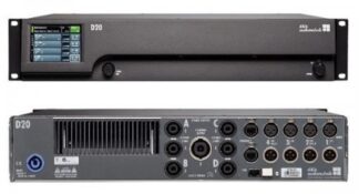 The 3 x D80 Touring rack is available with either a 32 A CEE mains power connector with a 32 A mains link or one 30 A NEMA mains socket, and a loudspeaker connector panel with three NL8 (4 channel) and one LKA25 (12 channel) loudspeaker outputs. Electrically interlocked auxiliary mains outputs (powerCON1 16 A sockets) are provided to power the DS10 and other low current devices such as laptops.