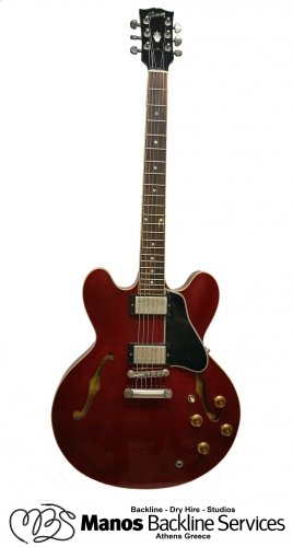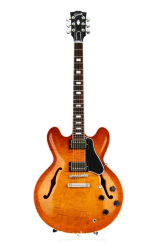 The Gibson ES-335 was the world’s first commercial semi-hollow body electric guitar, released by Gibson Guitar Corporation as part of its ES (Electric Spanish) Series in 1958. It is neither hollow nor solid; instead, a solid wood block runs through the center of its body, but the sides are hollow, sporting violin-style f-holes
