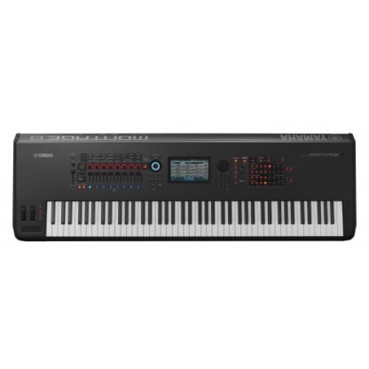 The Yamaha MONTAGE 8 is an 88-key workstation synthesizer that combines a balanced hammer action keyboard with aftertouch, two sound engines (AWM2 and FM-X), and Motion Control Synthesis. It features a 7-inch color touchscreen, 128-note polyphony, and a robust effects engine. The MONTAGE 8 offers a wide range of features for sound creation and live performance, including Live Sets, Direct Control Assignment, and Seamless Sound Switching.